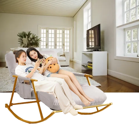 Uživajte v maksimalni sprostitvi v dvoje. Ta prostoren dvojni gugalni stol združuje moderen dizajn, stabilno zlato kovinsko osnovo in izjemno udobno oblazinjenje. Zaradi širokega sedeža, ergonomskih blazin, nastavljivega naslonjala in podnožnika ter praktičnega stranskega žepa je idealen za dnevno sobo, teraso in zimski vrt.