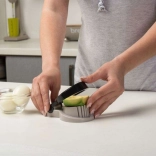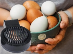 Nabor trdnih žičk nareže jajce na tanke, enakomerne rezine, idealne za solate in sendviče.