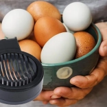 Robustno, a lahko plastično ohišje je preprosto za vzdrževanje, zaradi kompaktnih dimenzij pa ga pospravite tudi v majhen predal. Upravljanje je intuitivno: jajce položite v ležišče in pokrov z žičkami rahlo pritisnete.