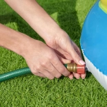 Bazen je opremljen z razpršilnikom, ki ga preprosto priključite na vrtno cev in tako ustvarite osvežujoč vodni tuš za zabavo in igro.
