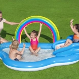 To vodno igrišče je popolna izbira za otroke v vašem poletju. Zahvaljujoč prijazni kombinaciji z mavričnim obokom in sončkom bodo vaši otroci uživali ure zabave v osvežujoči vodi. Večnamenskost bazenčka ne nudi le hladnega zavetja pred poletno vročino, ampak prinaša tudi smeh in veselje zaradi raznolikih funkcij.