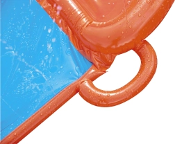 Priredite domače vodne dirke kar na vrtu. Trojni tobogan BESTWAY ponuja tri vzporedne steze, po katerih lahko otroci tekmujejo drug ob drugem. Stranske prhe ustvarjajo nežno vodno kaskado in ohranjajo površino popolnoma mokro za hiter in tekoč drs.