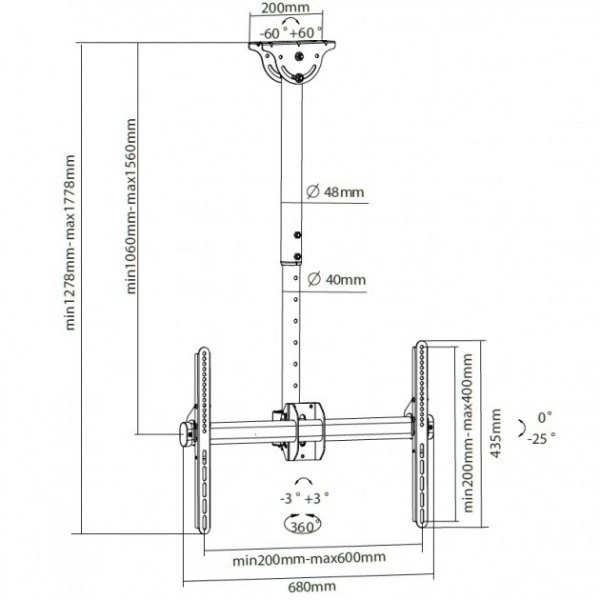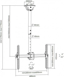 Zanesljiv stropni nosilec za televizorje in zaslone z diagonalo 37–70" vam prihrani prostor in omogoča idealen kot gledanja. Zahvaljujoč trdni jekleni konstrukciji in podpori standarda VESA ponuja varno in univerzalno namestitev v domu, pisarni in komercialnih prostorih.