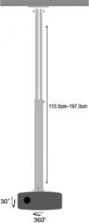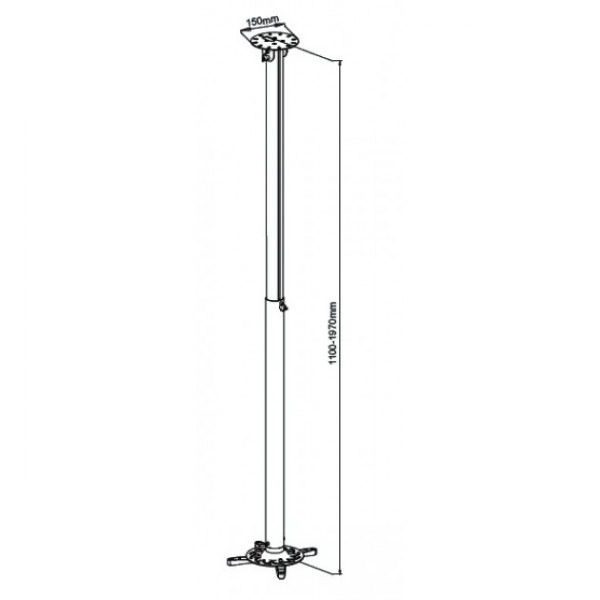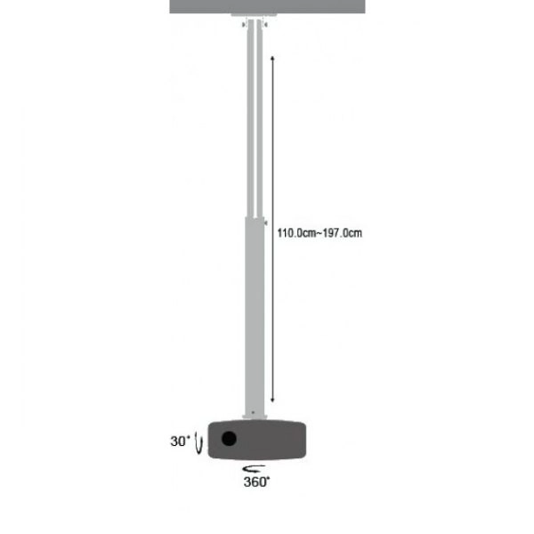 Univerzalni stropni nosilec za projektor z enostavno namestitvijo in nastavljivo dolžino 110–190 cm. Zahvaljujoč trdni aluminijasti konstrukciji nosi do 15 kg, ponuja nagib, 360° vrtenje in integrirano urejanje kablov za čisto namestitev v domu, pisarni in komercialnih prostorih.
