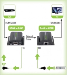 Enostavno razširite svoj HDMI signal brez izgube kakovosti. Ta podaljševalnik uporablja običajne omrežne kable RJ45 in nudi stabilen prenos slike in zvoka do 60 metrov v ločljivosti Full HD. Zahvaljujoč povratnemu IR kanalu lahko udobno upravljate vir (npr. DVD/mediabox) neposredno pri TV ali monitorju.