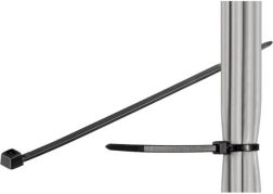 Te črne najlonske vezice dolžine 200 mm in širine 2,5 mm zagotavljajo zanesljivo in čisto rešitev za organizacijo kablovja ter hitro fiksiranje predmetov. Zahvaljujoč samozapiralnemu mehanizmu trdno držijo na mestu in ne drsijo. Material PA66 zagotavlja visoko trdnost, stabilnost in odpornost na toploto ter staranje.