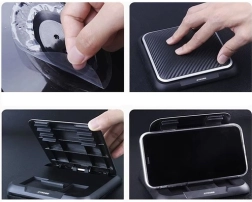 Kakovostno lepilo in protidrsna površina zagotavljata stabilnost na gladkih in rahlo strukturiranih površinah armaturne plošče ali mize, brez sledi po odstranitvi.