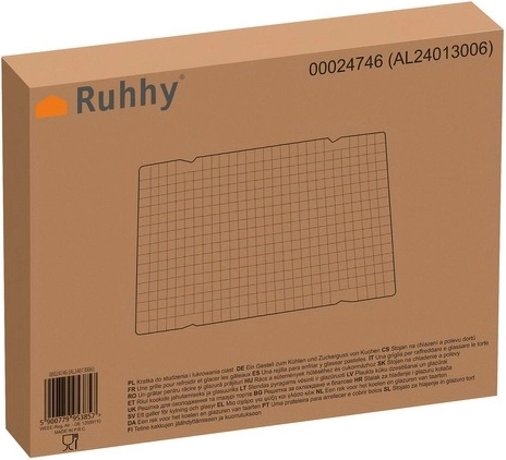Hladilna mreža RUHHY z merami 40 × 25 × 1 cm je nepogrešljiv pomočnik za ljubitelje peke. Robusten okvir iz ogljikovega jekla in štiri stabilne nogice zagotavljajo enakomerno kroženje zraka pod in nad pecivom, zato se pite, piškoti, mafini in biskvitna testa hladijo hitreje in brez nabiranja vlage.