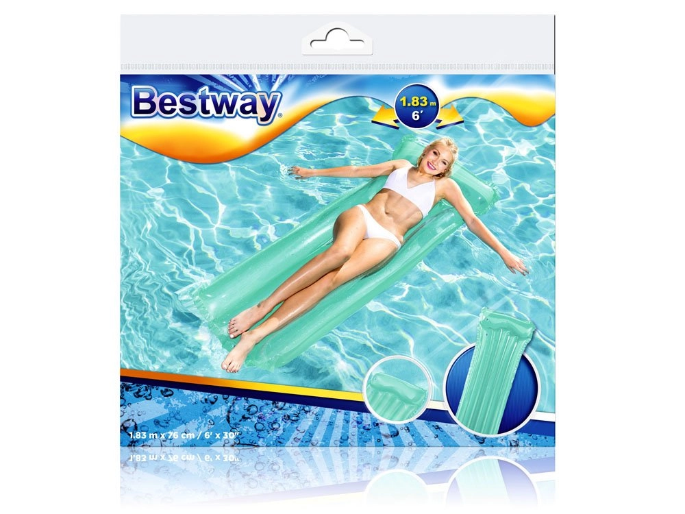 Napihljiva blazina Bestway Deluxe ponuja udobno ležanje na vodi zahvaljujoč vgrajenemu vzglavniku in segmentiranim komoram. Trpežen PVC zagotavlja dolgo življenjsko dobo in odpornost na slano ter klorirano vodo, varnostni ventil pa preprečuje nezaželeno uhajanje zraka.