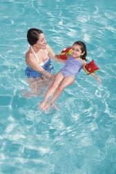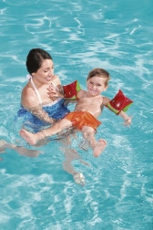 Napihljivi rokavčki Bestway so idealni za otroke, ki se učijo plavati. Dve ločeni zračni komori zagotavljata zanesljiv vzgon, medtem ko mehko in lahko PVC ne omejuje gibanja rok. Vesel motiv ananasa in izrazite barve spodbujajo male plavalce k varnemu spoznavanju z vodo.