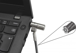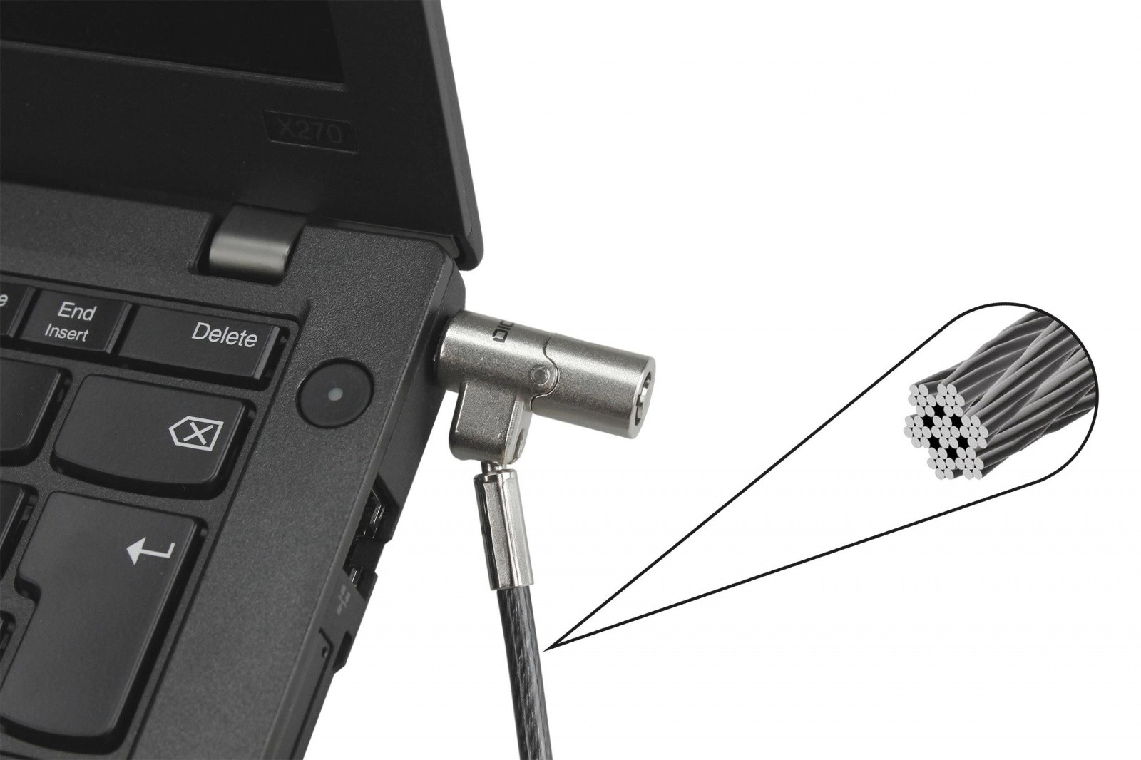 Hitro in učinkovito zavarujte svoj tanek prenosnik. Ta Nano Ultra Slim ključavnica je združljiva z režo 2,5 × 6 mm in je zasnovana za naprave s premerom glave ključavnice več kot 11 mm. Vežičnata jeklena pletenica s PVC prevleko zagotavlja visoko odpornost proti preščipnjenju, medtem ko gumijasti blažilec ščiti površino naprave.