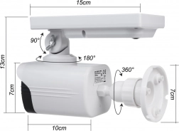 Solarna atrapa varnostne kamere združuje realističen videz s praktično LED osvetlitvijo, ki se samodejno aktivira ob zaznavi gibanja. Vgrajeni panel je nastavljiv, zato zlahka izkoristite največ sončne energije in dobite brezžično, brezvzdrževalno rešitev za zunanje varovanje.