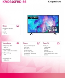 Zahvaljujoč sprejemnikom DVB‑T2 in DVB‑S2 s podporo H.265/HEVC ste pripravljeni na sedanje in prihodnje oddajanje brez potrebe po zunanjih set‑top boxih. Široka ponudba priključkov olajša povezavo konzole, set‑top boxa, zvočnega sistema in zunanjih medijev. Tanka zasnova z dvema stabilnima nogicama se odlično poda v modern interier ali na steno z nosilcem VESA.