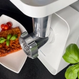 Mrežice 3/5/7 mm in nož iz nerjavnega jekla zagotovijo natančno strukturo za burgerje, bolonjsko omako in paštete.