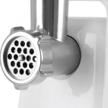 Praktična reverzna funkcija odpravi morebitno zamašitev komore, upravljanje je preprosto z enim gumbom, za varnost živil pa poskrbijo materiali brez BPA. V paketu prejmete 3 kovinske mrežice (fina 3 mm, srednja 5 mm, groba 7 mm), nož iz nerjavnega jekla in potiskač. Kovinska mlelna komora povečuje vzdržljivost in stabilnost. Vgrajen predalček za pripomočke olajša shranjevanje mrežic.