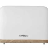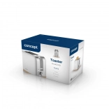 Opekač kruha Concept Elwood TE2015 je opremljen z funkcijo samodejnega centriranja, ki zagotavlja, da bo rezina kruha vedno enakomerno pečena. Zahvaljujoč funkciji visokega izmetanja je toast enostavno in varno odstraniti, medtem ko nedrseče nogice zagotavljajo maksimalno stabilnost med uporabo.