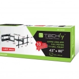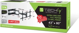 Stenski nosilec Techly je zasnovan za uporabnike, ki potrebujejo varno in prilagodljivo rešitev za montažo televizorja na steno. Podpira televizorje z diagonalo od 43" do 80" in največjo maso do 50 kg. Zahvaljujoč podaljšani roki z dosegom do 1015 mm lahko udobno prilagodite položaj televizorja svojim potrebam.