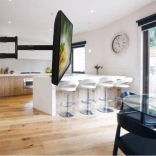 Naklon od +5° do -15°, vrtenje za ±90° in nastavitev razdalje od stene povečajo udobje pri gledanju.