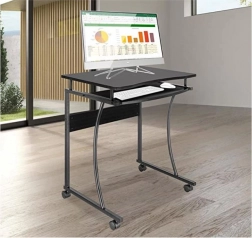 Mobilna računalniška miza je popolna rešitev za tiste, ki potrebujejo funkcionalen in prilagodljiv delovni prostor. Zaradi kompaktnih dimenzij je primerna za manjše notranjosti. Miza ima izvlečno polico za tipkovnico, ki omogoča učinkovito izrabo delovne površine. Štiri kolesca, od katerih imata dve zavori, zagotavljajo mobilnost in stabilnost.