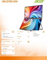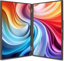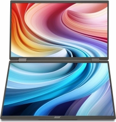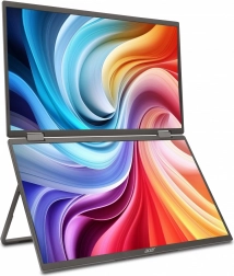 Mobilni dvojni 16'' monitor ACER prinaša udobje dveh zaslonov v prenosnem paketu. Zahvaljujoč pametnemu tečajnemu stojalu ga hitro razprete na mizi, nastavite idealen kot in takoj pridobite več prostora za delo, ustvarjanje in zabavo.