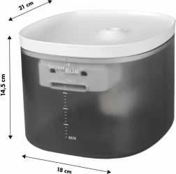 Sodoben, diskreten dizajn v sivi barvi se poda večini interierjev, fontana pa je hkrati preprosta za vzdrževanje – posamezne dele preprosto razstavite in očistite. Velika prostornina občutno zmanjša pogostost dolivanja, kar boste cenili zlasti ob daljših odhodih od doma.