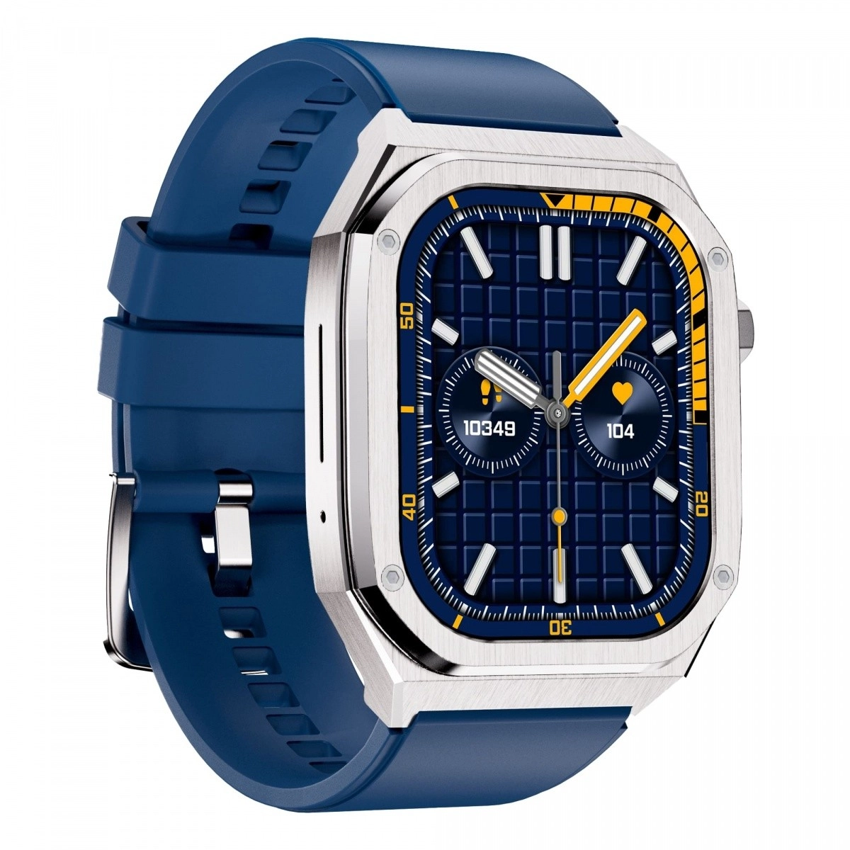 Maxcom FW65 Iron S je zasnovana za moške, ki zahtevajo prefinjen slog in zanesljivo zmogljivost. Srebrno ohišje s kovinsko ali udobnim modrim športnim paščkom odlično dopolni tako poslovni kot sproščen videz. Zahvaljujoč svetlemu AMOLED zaslonu imate vse ključne informacije vedno jasno berljive – v službi, na sestanku in med treningom.