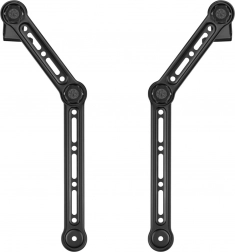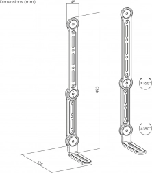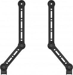 Robustna kovinska izvedba z nosilnostjo 15 kg zagotavlja visoko stabilnost in združljivost z veliko večino modelov in znamk. Nastavljive odprtine in večtočkovna pritrditev olajšajo uskladitev s širino in višino soundbara ter televizorja.