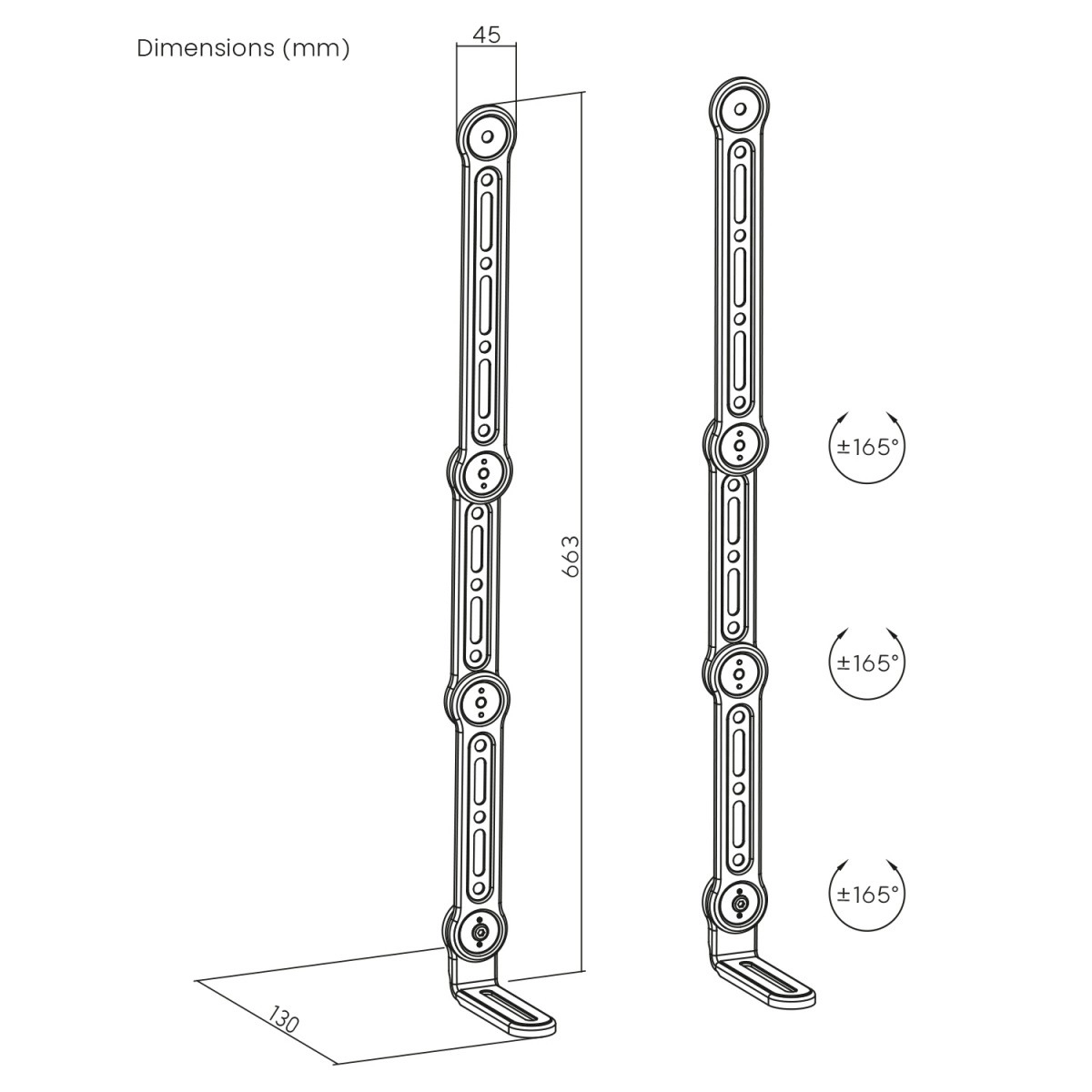 Nastavljive roke in več členov omogočajo postavitev soundbara točno tja, kjer zveni najbolje – ne glede na dimenzije televizorja.