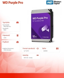 Trdi disk Western Digital Purple Pro 12TB je idealna izbira za inteligentne video rešitve. Ponuja visoko kapaciteto in zmogljive funkcije za analizo podatkov in umetno inteligenco.