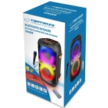 Zvočnik ESPERANZA Karaoke Singer je opremljen z vgrajenim FM radiem, kar omogoča poslušanje vaših najljubših radijskih postaj. Dva mikrofon-ska vhoda naredita to napravo odlično izbiro za karaoke zabave. S daljinskim upravljalnikom lahko preprosto upravljate nastavitve, ne da bi morali dostopati do naprave. Mogočen zvok in učinkovita LED osvetlitev zagotavljata nepozabno izkušnjo doma in na prostem.