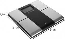 Visokonatančni senzorji in kontaktne elektrode zagotavljajo zanesljiv izračun BMI ter deleža maščobe, vode in mišične mase. Rezultati se po meritvi samodejno shranijo v uporabniški profil.