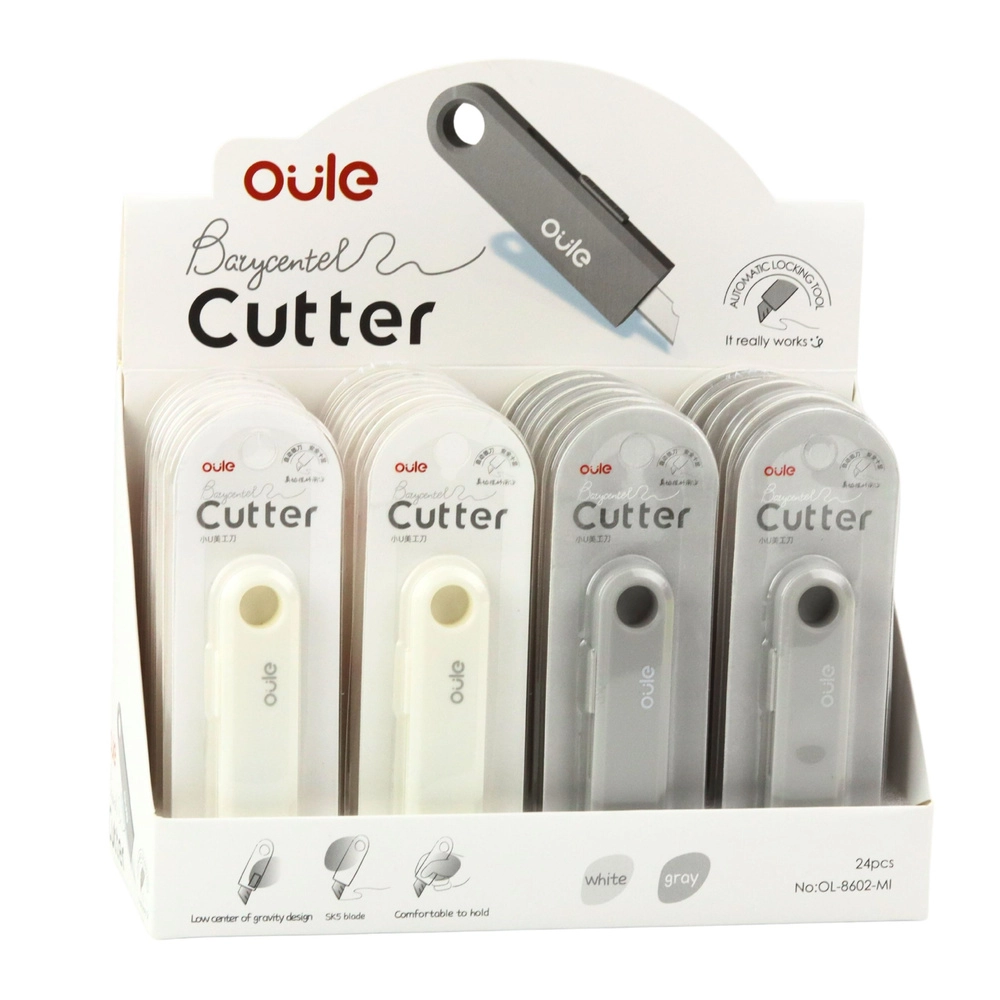 Vzdržljivo jekleno rezilo se izvleče z ročnim drsnikom, medtem ko lahko plastično ohišje z zaobljenimi robovi prijetno sede v roko. Očko v ohišju omogoča obešanje na vrvico, kavelj ali pritrditev na ključek. Na voljo v umirjenih barvah (mix); barva je izbrana naključno.