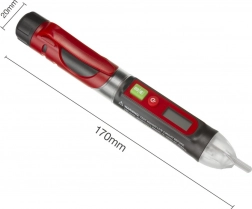 Ta brezkontaktni detektor napetosti je nepogrešljivo orodje za vsakega električarja in domačega mojstra. Njegova ergonomska zasnova omogoča udoben oprijem in preprosto upravljanje. Naprava ponuja: