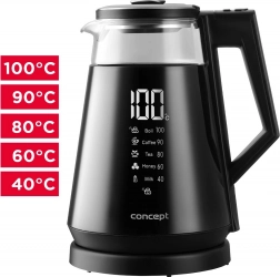 Grelnik omogoča uravnavanje temperature v štirih korakih (40°C, 60°C, 80°C, 100°C). Zahvaljujoč berljivemu digitalnemu zaslonu boste imeli popoln pregled nad izbranim programom in trenutno temperaturo vode. Funkcija KEEP WARM ohranja nastavljeno temperaturo do 4 ure.
