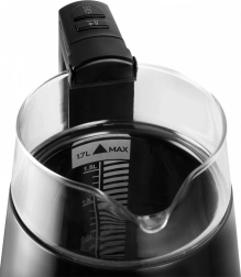 Grelnik je enostaven za uporabo in vzdrževanje zahvaljujoč snemljivemu pokrovu z integriranim filtrom proti nabiranju vodnega kamna ter velikemu odprtju za nalivanje vode. Gladko dno s skrito grelno spiralo preprečuje nastanek vodnega kamna, velik merilnik nivoja vode pa omogoča enostaven pregled nad količino vode v grelniku. Popolnoma vrtljiva baza ponuja prostor za shranjevanje odvečnega kabla.