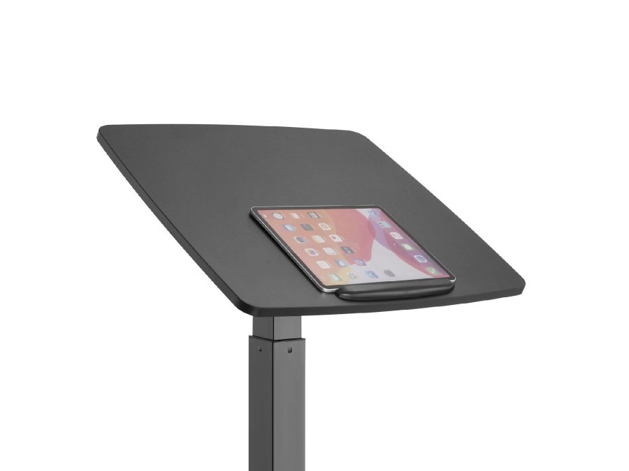 Delovna plošča z možnostjo nagiba nudi udoben kot za pisanje, branje, skiciranje in delo na tablici. Robusten jeklen okvir in kakovostna kolesa z zaklepom zagotavljajo stabilnost in varno uporabo pri premikanju med prostori.
