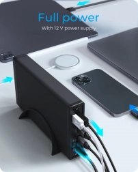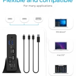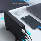 Povežite periferne naprave prek 1× USB‑C in 2× USB‑A neposredno na ohišju. Prihranite porte prenosnika in imejte vse pri roki.