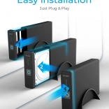 Natančno izdelano aluminijasto ohišje zagotavlja odvajanje toplote in dolgo življenjsko dobo. Zahvaljujoč Plug & Play in HotSwap je menjava diskov hipna, s priloženim stojalom pa prihranite prostor na mizi pri navpični postavitvi.