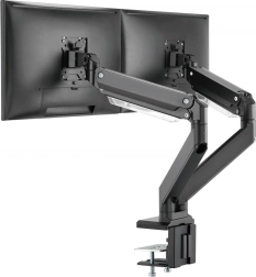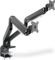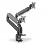 Ergonomska nastavitev položaja monitorja zagotavlja udobje in učinkovitost. Ta nosilec za dva monitorja je enostavno namestiti s pomočjo sponskega pritrditvenega sistema za monitorje do 35" in teže do 15 kg vsak.