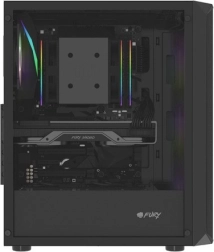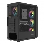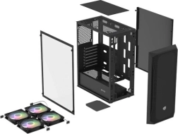 Trije 120 mm RGB ventilatorji spredaj + eden zadaj, mesh sprednja plošča in prezračevan zgornji del za nizke temperature tudi pod obremenitvijo. Možna namestitev do 8 ventilatorjev.