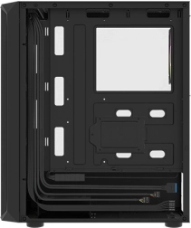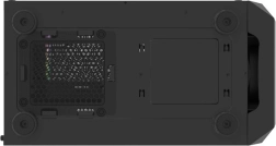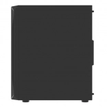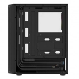 Dvokomorna zasnova, urejeno vodenje kablov, steklena bočnica ter priključki: 2× USB 3.0, 1× USB 2.0, HD Audio, Power/Reset.