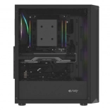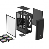 Sestavite zmogljiv in tih sistem. Shobo SH4F RGB združuje tri 120 mm RGB ventilatorje spredaj in enega zadaj z odprtim zgornjim panelom ter fino sprednjo mrežico za gladek pretok zraka. Ohišje sprejme do 8 ventilatorjev in zračni hladilnik CPU do 161 mm, zato ohranja nizke temperature tudi za zmogljive komponente.