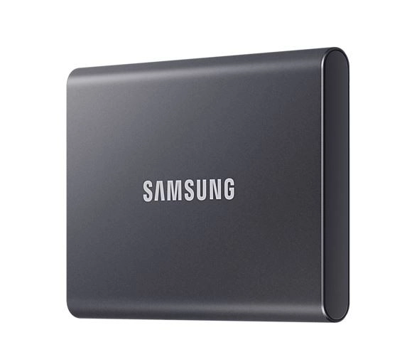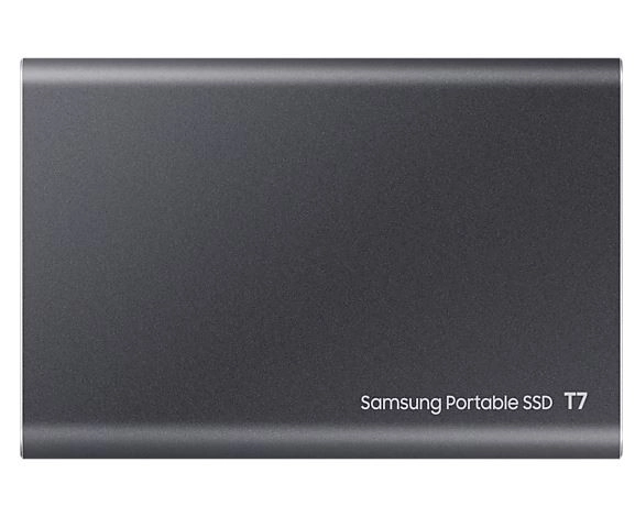Kompaktnost in lahkost - SSD T7 je po velikosti primerljiv s kreditno kartico, tehta le 58 gramov in njegovo aluminijasto ohišje udobno sede v roko.