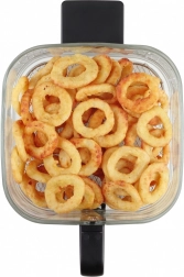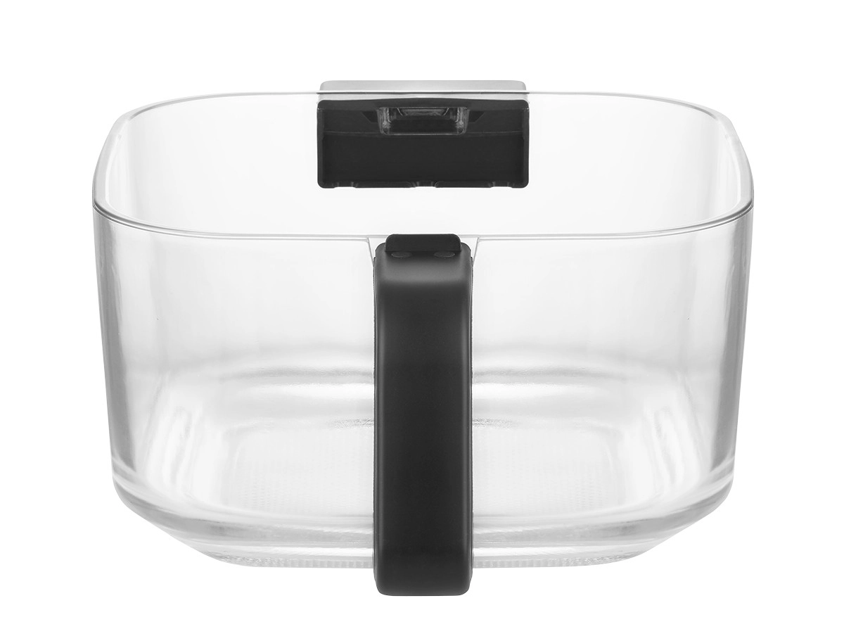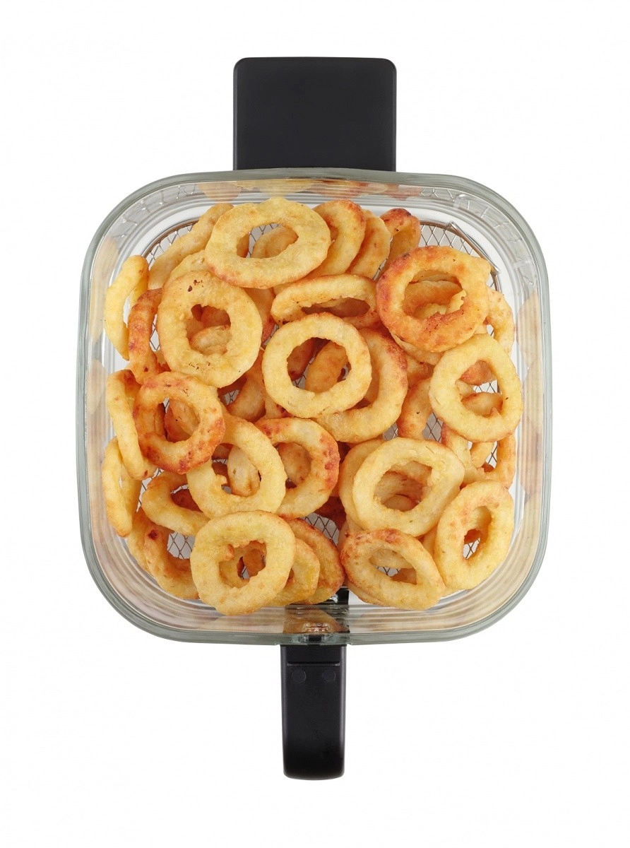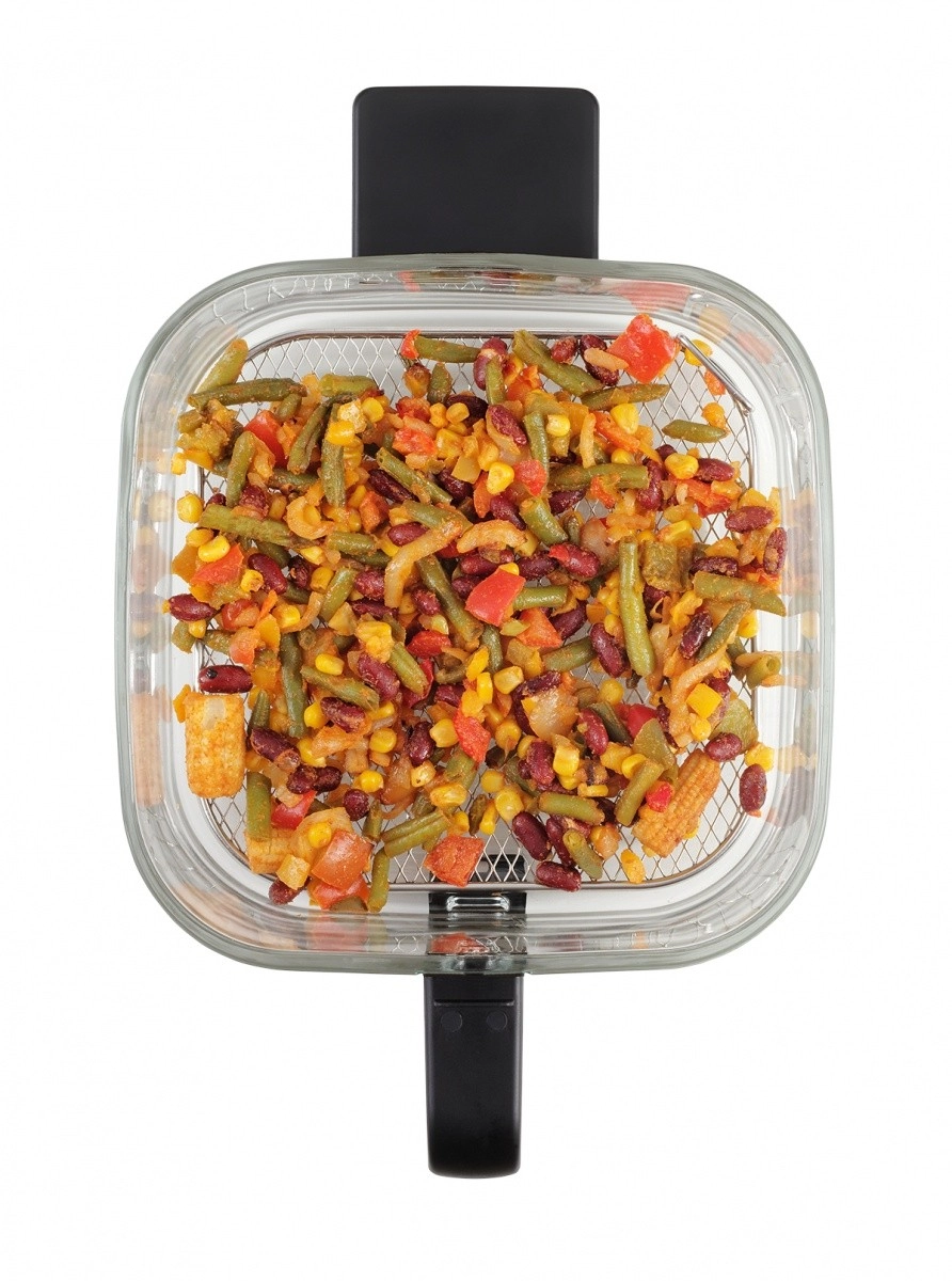 Vzdržljiv steklen koš se enostavno čisti, ne vpija vonjav in se ne praska. Zahvaljujoč prosojni zasnovi vedno vidite stanje jedi brez odpiranja cvrtnika.