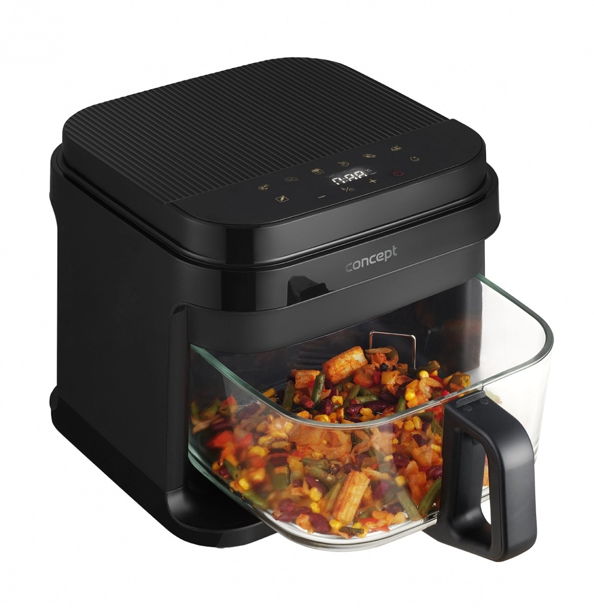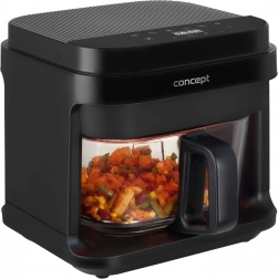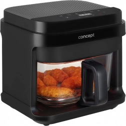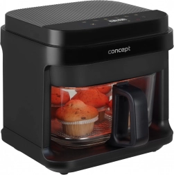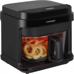 Cvrtnik Concept FR5500 je praktična izbira za vsakodnevno kuhanje. Ponuja peko, žar in cvrtje z minimalno maščobo, in to bistveno hitreje kot v klasični pečici. Prozorni steklen koš je odporen proti usedlinam, vonjavam in praskam ter omogoča nadzor nad jedmi brez odpiranja.