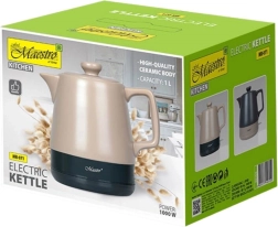 Doživite udobno segrevanje vode s keramičnim grelnikom MAESTRO, ki združuje brezčasen videz s praktično opremo za vsakodnevno rabo. Prostornina 1 l je idealna za manjša gospodinjstva ali pisarno, moč 1200 W pa zagotavlja hitro in tiho segrevanje. Keramično ohišje v bež barvi je trpežno in enostavno za čiščenje.