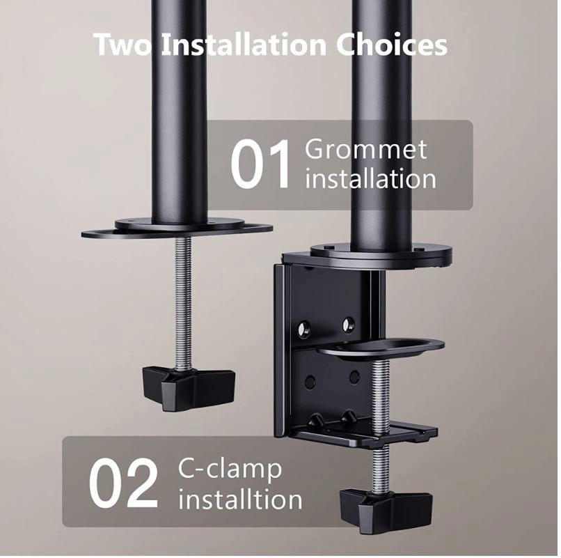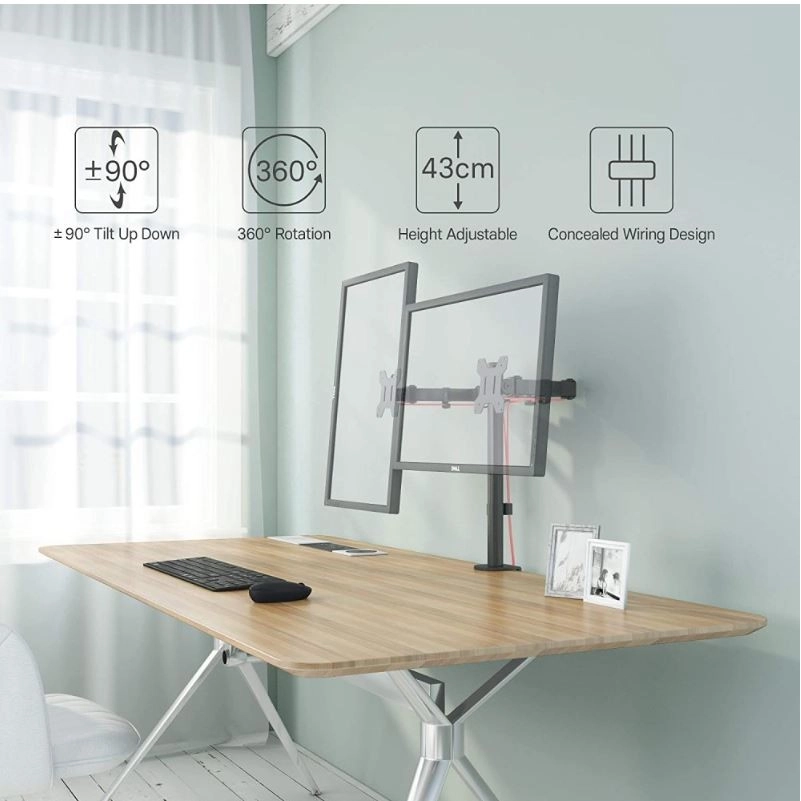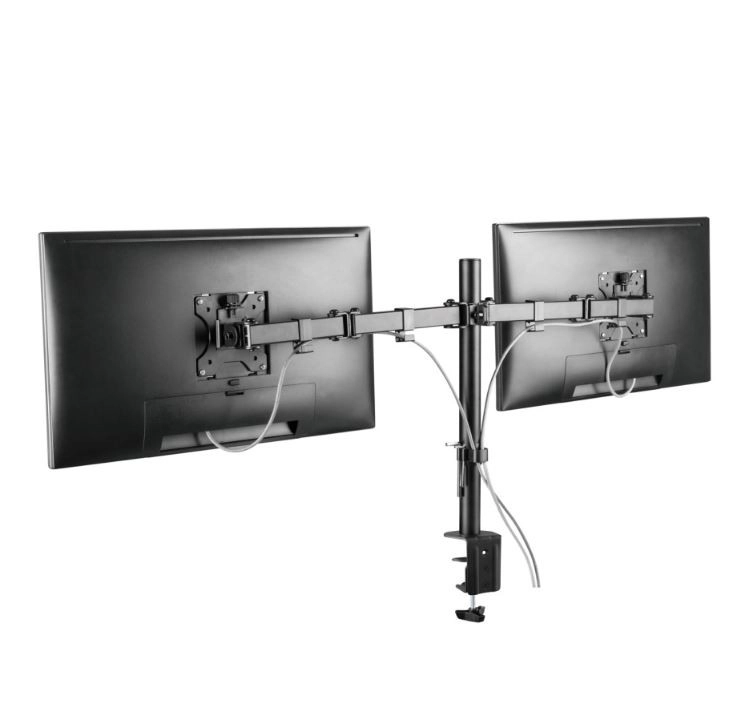Dvojni nosilec omogoča tekoče vrtenje in nagib monitorjev v vse smeri, kar olajša iskanje optimalnega kota pogleda.
