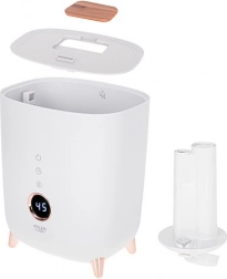Vgrajeni higrostat neprekinjeno meri vlažnost in ohranja izbrano raven. Pregleden LED‑panel z gumbi na dotik zagotavlja preprosto in natančno nastavitev.