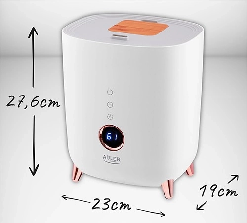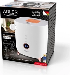 Ustvarite zdravo in prijetno okolje doma ali v pisarni. Ultrazvočni vlažilnik ADLER AD 7972 razpršuje fino meglico premera 1–5 µm, ki učinkovito povečuje vlažnost in izboljšuje kakovost zraka. Elegantna zasnova z rožnato‑zlatimi poudarki in pregleden LED zaslon se odlično podata sodobni notranjosti.