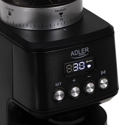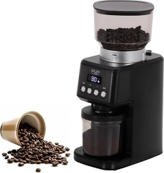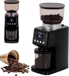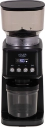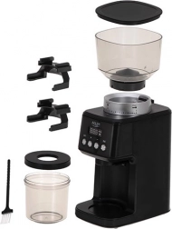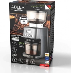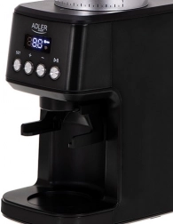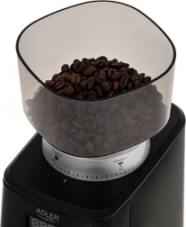 Električni mlinček za kavo Adler je opremljen s konusnimi kovinskimi zobniki, ki zagotavljajo enakomerno mletje zrn in vodijo do polnega okusnega doživetja vaše pripravljene kave. Ponuja dva načina delovanja: kavo lahko meljete neposredno v priloženo posodo ali neposredno v portafilter.